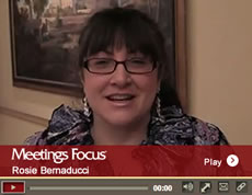 In this edition of Meetings in a Minute, we touch base with David Stern, vice president and corporate secretary for West Coast Casualty Service, who says his company has saved approximately $50,000 by using technology and the Internet for tasks such as registration, online exhibiting, advertising and promoting via social media. The second clip, recorded on location at our Meetings Focus Live! event in Atlantic City last year, features Rosie Bernaducci, who plans meetings for Banks Sadler. Rosie reminds fellow planners that they should always know their objective, and think of themselves as “meetings managers.”