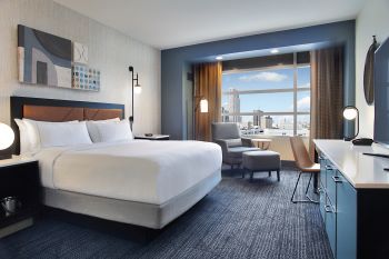 The 600-room Hilton Omaha, Nebraska’s largest hotel, will complete a $12 million guest room renovation at the end of summer 2023. Like the vibrant city just outside the hotel’s doors, all guest rooms will soon take on an updated stylish and modern aesthetic with new furniture, lighting and decor. The guest room renovation follows the completion of the recently refreshed lobby and public spaces.